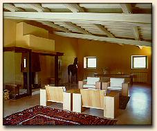 It is situated within the 830 Ha. estate of the Beneditictine Abbey of Spineto, which has been converted for meetings and study activities and can be reached in 3 minutes drive, crossing an uncontaminated countryside and verdant paddocks. The house interior is very spacious and comfortable with a very refined selection of furnishings and fittings. The guests enjoy a very surprising combination of old fashion and contemporary design. |